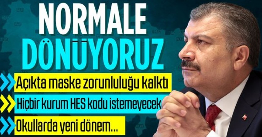 "Artık açık havada maske kullanmak zorunda değiliz." ifadesini kullanan Bakan Koca, "Kapalı ortamlarda havalandırma yeterliyse ve mesafe kuralına uyum gösterilebiliyorsa, maske takmak artık şart değil." dedi.