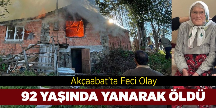 Akçaabat’ın Işıklar Yaylası'nda bir evde belirlenemeyen nedenle yangın çıktı. Çevredekilerin ihbarı üzerine olay yerine itfaiye, jandarma ve sağlık ekipleri sevk edildi. Yangında yatalak hasta olduğu öğrenilen 90 yaşındaki Zeliha Altunay hayatını kaybetti.