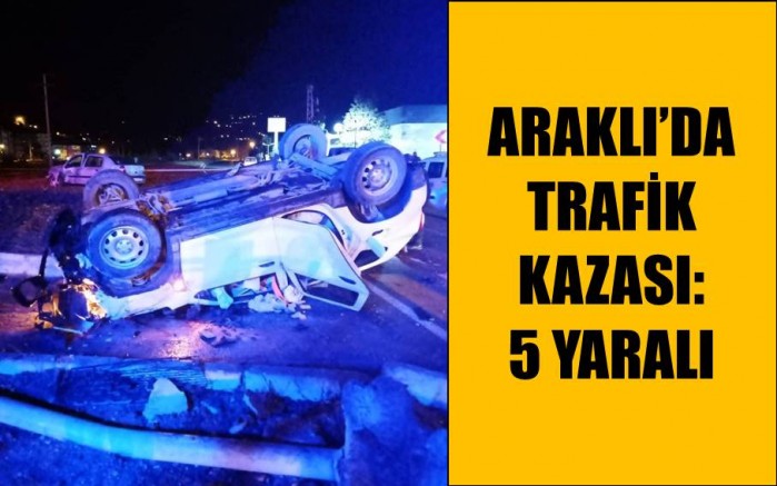 Önceki gece Araklı Bayram Halil Devlet Hastanesi önünde meydana gelen kazada, yol ayrımında Karadere yoluna çıkan 34 BM 1887 araçla Araklı’dan Bayburt istikametine gitmekte 61 ACI 908 plakalı araç çarpıştı. Araçlardan birisi takla atarak durabilirken diğeri ise bariyerlere çıktı. Araçlarda bulunan 5 kişi çeşitli yerlerinden yaralandı. Yaralılar olay yerine gelen 112 Acil ekiplerince önce Araklı Bayram Halil Devlet Hastanesine daha sonra ise Trabzon’daki hastanelere sevk edildi.