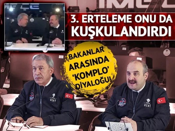 Ertelenme bilgisi geldiğinde Bakan Akar, yanında oturan Bakan Varank'a dönerek dikkat çeken bir soru yöneltti. Akar, Varank'a "Burada bir komplo düşünebilir miyiz?" diye sordu.