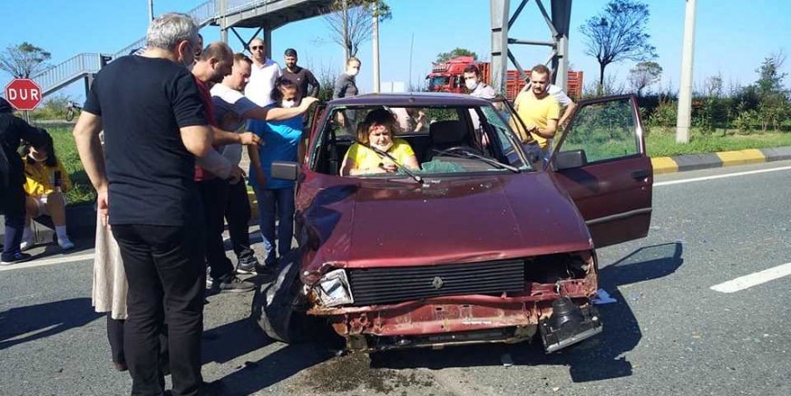 Vatandaşlar ve sağlık görevlilerin yardımı ile araçtan çıkarılan yaralılar ambulansla hastaneye kaldırıldı.