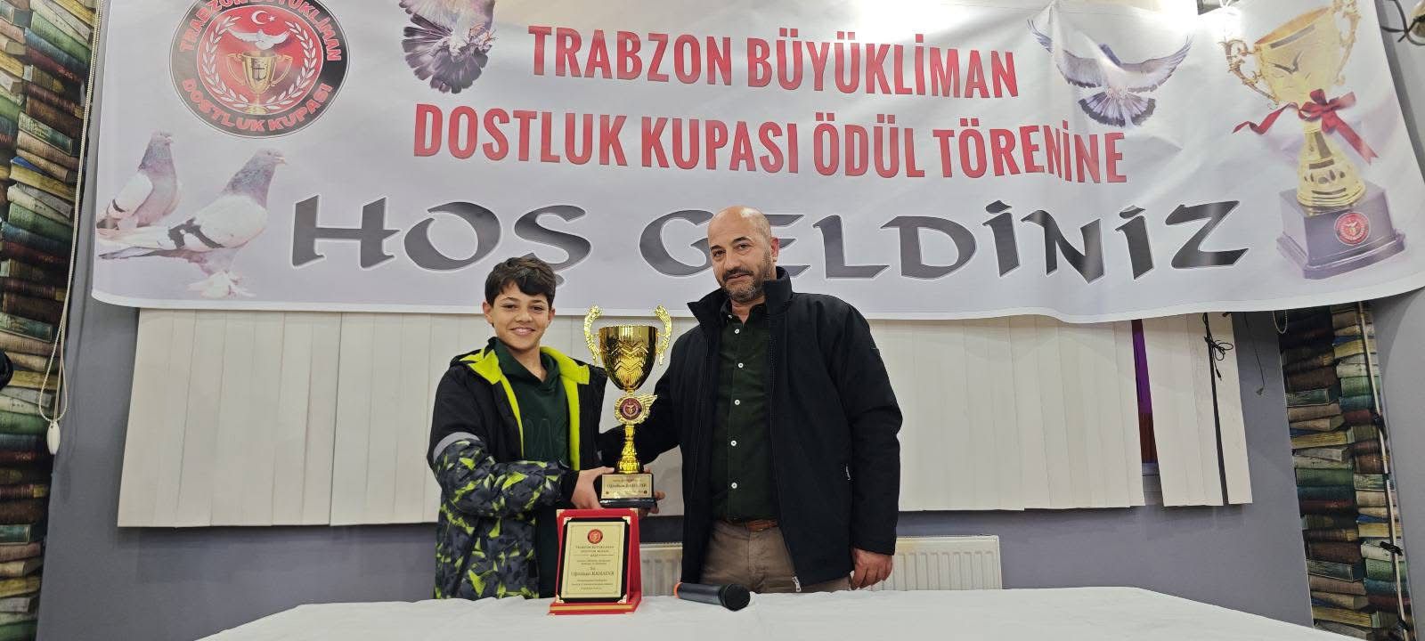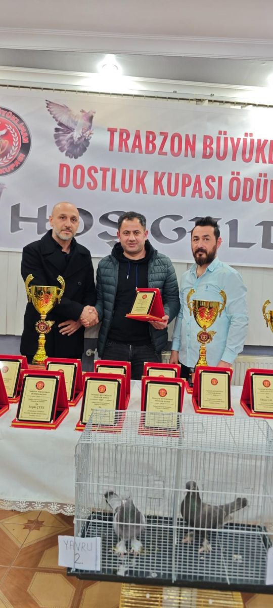Trabzon’un Vakfıkebir ilçesinde düzenlenen Büyükliman Dostluk Kupası ödül törenine önceki dönem Vakfıkebir Belediye Başkanı Hayri Birinci, Vakfıkebir Çarşı Mahallesi Muhtarı Gökhan Bahadır, Karadeniz Kupası Başkanı Ahmet Topal, Büyükliman Dostluk Kupası Başkanı Ergin Çete, Trabzon Ortahisar Güvercin Sevenler Dernek Başkanı Dinçer Kalaycı, Beşikdüzü Tonya Finosu Dernek Başkanı Reşat Devran Aydın ve güvercin severler katıldı.