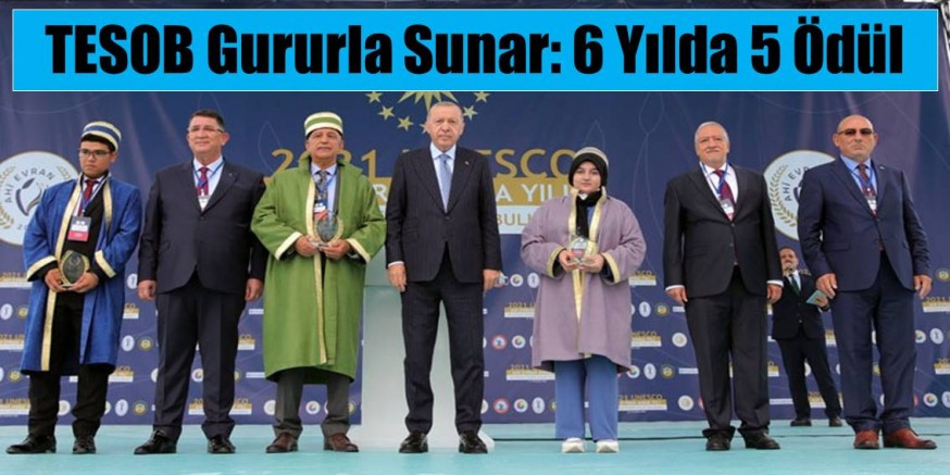 Cumhurbaşkanı Recep Tayyip Erdoğan konuşmasının ardından 34. Ahilik Haftası Ödül Töreni kapsamında Yılın Ahisi, Kalfası ve Çırağına da ödüllerini verdi. Trabzon’da kazaziye imalatçısı 15 yaşındaki Yaprak Maral, 2021 Yılının Çırağı Ödülünü Cumhurbaşkanı Recep Tayyip Erdoğan’ın elinden aldı. TESOB Başkanı Metin Kara da ödülünü aldığı sırada Yaprak Maral’a eşlik etti.