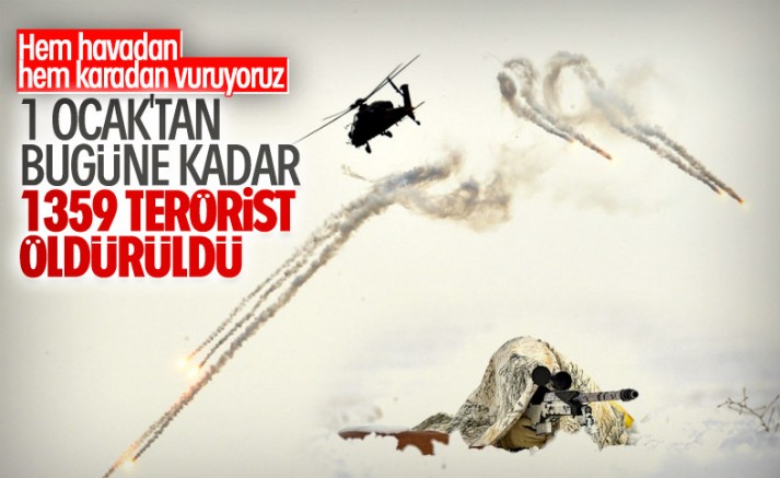Bakan Akar, 1 Ocak'tan bu yana operasyon bölgelerinde etkisiz hale getirilen teröristlerin sayısının 1359 olduğunu duyurdu.