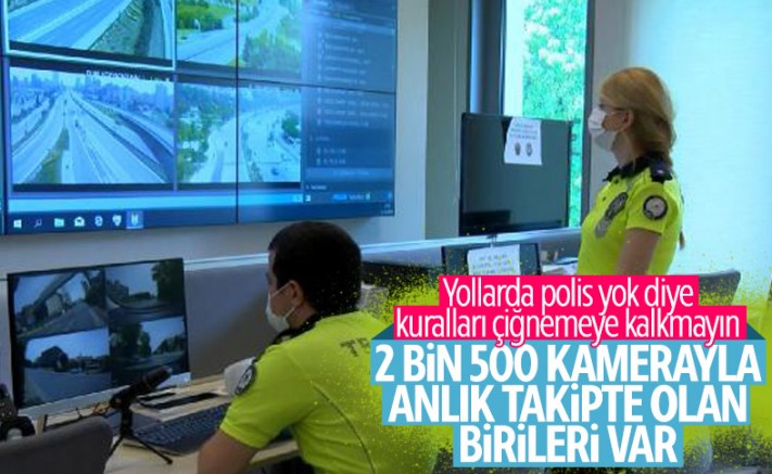 Uygulanan bu denetimler ise 15 Temmuz Şehitler Köprüsü İstanbul Trafik Denetleme Şubesi'nde yer alan Trafik Komuta Merkez'inden, 2 bin 500'den fazla kamera ile 24 saat anlık takip ediliyor.