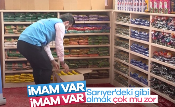 Koronavirüs tedbirleri kapsamında camiler kapatılırken, İstanbul'un Sarıyer ilçesinde bulunan Dedeman Camisi imamı ise caminin raflarını gıda ve temizlik malzemeleri ile doldurdu.