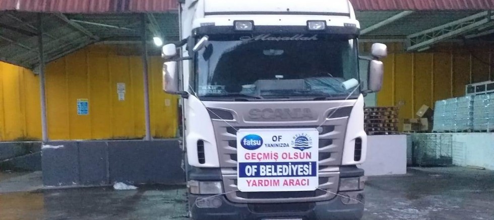 Of Belediye Başkanı Salim Salih Sarıalioğlu bölgedeki koordinasyon merkezleri ve kurumlarla yaptığı görüşmeler sonucunda ihtiyaç duyulan 2 tır dolusu su gönderdi. İlk etapta 2 TIR dolusu 6 bin 136 adet sudan oluşan yardımı, ihtiyaç duyanlara ulaştırılmak üzere, afet koordinasyon merkezine gönderiyor.