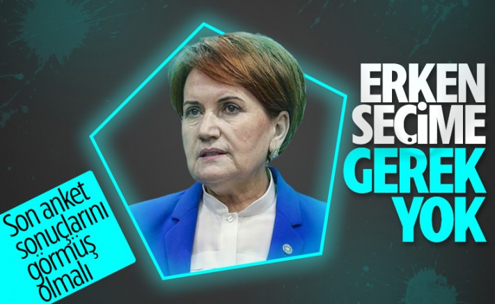 Akşener erken seçim tartışmalarına ilişkin, "Başından beri erken seçimle ilgili herhangi bir hissiyatı barındırmadım. İçinde bulunduğumuz şartlarda erken seçim görmüyorum" yorumunu yaptı.