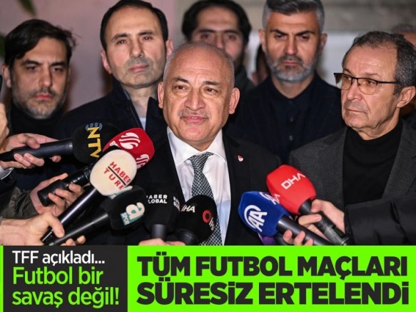 TFF Başkanı Mehmet Büyükekşi, olağanüstü toplantının ardından tüm liglerdeki maçların süresiz olarak ertelendiğini açıkladı.