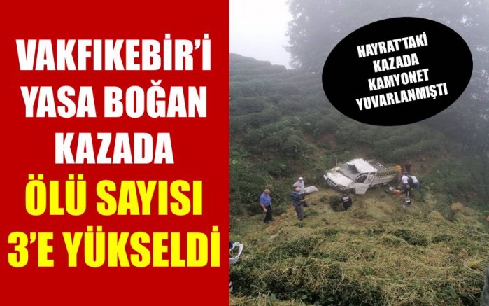 Hayrat İlçesi Pınarca Köyü mevkiinde meydana gelen trafik kazasında Vakfıkebir Belediyesinden kısa bir süre önce emekli olan, Küçükdere Mahallesinden Ali Dal yaşamlarını kaybetmişti. Aynı kazada ağır yaralanan zabıta Nebi Kılıç’ın annesi Havva Kılıç da (71) kurtarılamayarak hayatını kaybetti.