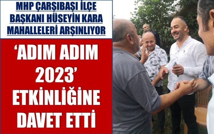 Programla ilgili MHP Çarşıbaşı İlçe Başkanı Hüseyin Kara, yaptığı açıklamada “Liderimizin talimatlarıyla düzenlenen adım adım 2023 ilçe ilçe anlatma toplantıları kapsamında Genel Başkan Yardımcımız Sayın Erkan Haberal, Merkez Yönetim Kurulu (MYK) Üyelerimiz Sayın Yavuz Tellioğlu, Sayın Afşin Birben ve Sayın İdris Aydın’ın katılımlarıyla MHP heyeti olarak ilçemizde 9 Eylül 2022 Cuma günü saat 14.30’da ilçe merkezimizde bulunan Yağmur Düğün Salonu’nda halkımızla buluşacağız. Milliyetçi Hareket Partisi Çarşıbaşı İlçe Başkanlığı olarak tüm Çarşıbaşı halkımız programımıza davetlidir. Halkımıza şimdiden teşekkür eder, saygılarımı sunarım.” dedi.
