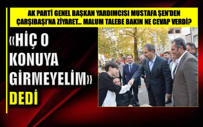 Ardından ilçe binasında partililerle ve muhtarlarla bir araya gelen Şen, talepleri dinledi. Parti yönetimiyle yapılan özel görüşmede ise bazı partililerin Çarşıbaşı Belediye Başkan adayının yeniden AK Parti’den olması gerektiği yönündeki taleplerine ise Şen’in “Hiç o konuya girmeyelim” şeklinde karşılık verdiği ve Çarşıbaşı ilçesinin önümüzdeki dönemde de yeniden Cumhur İttifakı kapsamında MHP’ye verileceği öğrenildi.