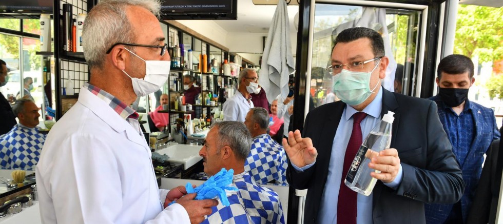 Ortahisar Belediyesi faaliyetleri çok sıkı şartlara bağlanan ilçedeki 635 berber, kuaför ve güzellik salonuna destek olmak amacıyla içinde maske, dezenfektan ve eldivenin yer aldığı sağlık seti hediye ediyor.