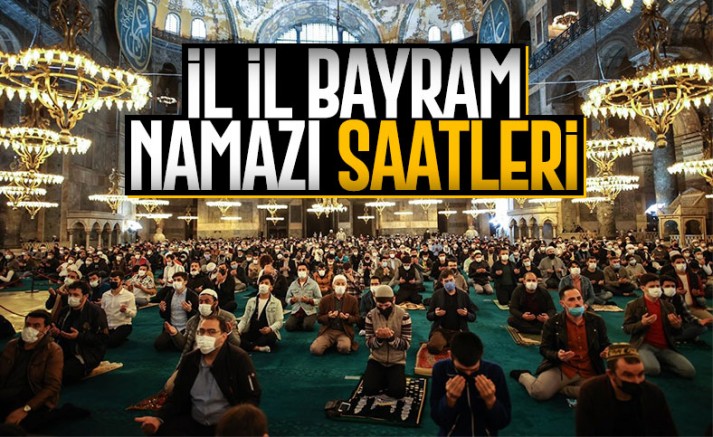 81 ilde farklı dakikalarda idrak edilecek olan bayram namazı; Ankara'da 06.20, İstanbul'da 06.34, İzmir'de 06.45, Çanakkale'de 06.46, Iğdır'da 05.35'te kılınacak.