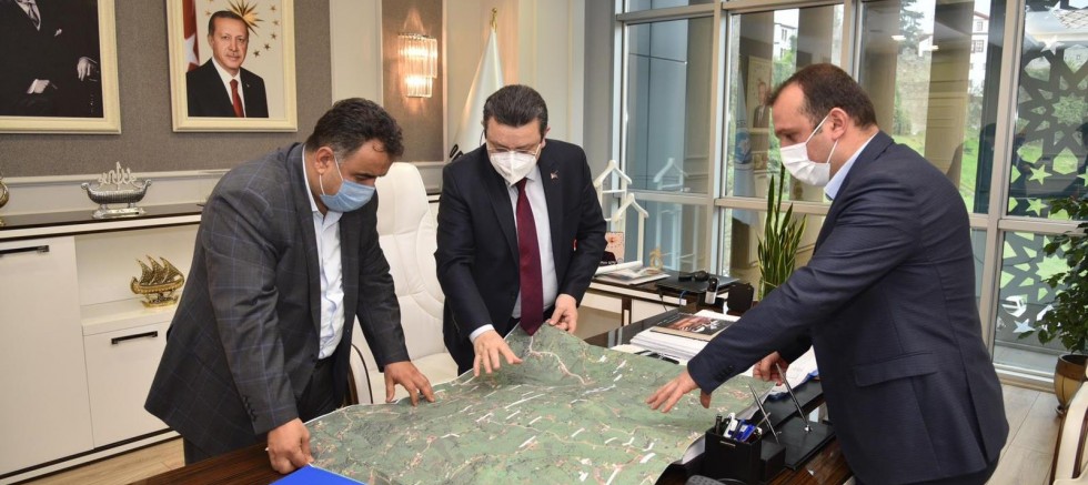 TİSKİ’nin son dönemde Ortahisar’da yaptığı en büyük proje olan 565 km uzunluğundaki içme suyu hattının yenilenmesiyle ilgili projeyi harita üzerinde Başkan Genç ile istişare eden Tekataş, su hatlarının yenileceği bölgeleri harita üzerinde tek tek anlattı.