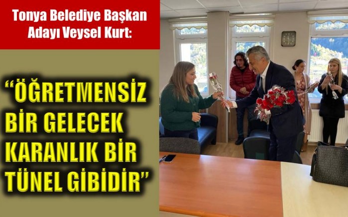 Kurt, bireylerin hayata adım attıkları ilk andan itibaren onlara rehberlik eden öğretmenlerin, kutsal bir görevi ifa ettiklerini söyledi. Öğretmenliğin sadece büyük bir sorumluluk değil, fedakarlık ve sabır da gerektiren bir meslek olduğuna vurgu yapan Belediye Başkan Adayı Veysel Kurt, “Bu onurlu ve en zor mesleklerden birisi olan öğretmenlik makamı geleceğimiz açısından da büyük önem taşımaktadır. Zira gelecek neslin yetişmesinde öğretmenlerimizin rolü çok büyüktür. Nasıl ki okumanın ve öğrenmenin önemini anlatan güzel sözlerle yetişerek bugünlere gelmişsek, o öğrenmeye vesile olan öğretmenlerimizin kıymetini de bilerek ona göre hareket etmek en önemli görevlerimizden birisi olmalıdır.