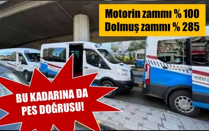 12 Haziran 2023 tarihinde motorin 23 TL, dolmuş ücreti ise 6,5 TL idi. 24 Nisan 2025 tarihi itibariyle ise motorin 46,17 TL iken dolmuş ücreti 25 TL yapıldı. Böylelikle motorine bu süre içinde yüzde 10’lük bir zam yapılırken dolmuş ücretlerine yüzde 285 oranında zam yapılmış oldu. Yorumu kamuoyuna bırakıyoruz.