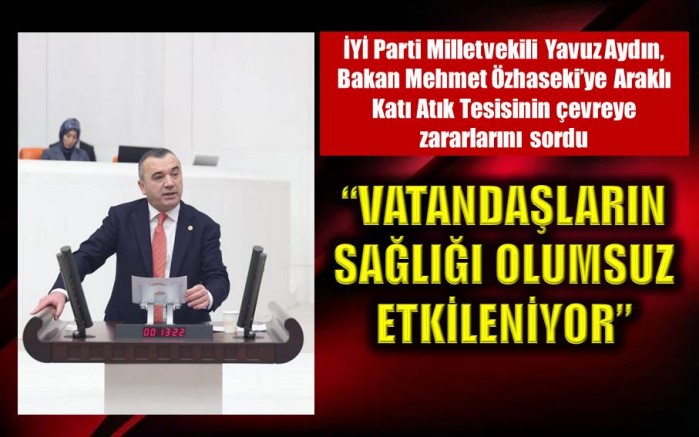 “Araklı Entegre Katı Atık Değerlendirme ve Bertaraf Tesisi, bölgemizde hem denizi hem de çevreyi, olumsuz etkilemektedir. Katı atık tesisine 250 metreden daha yakında, yerleşim yeri olmaması gerekmektedir. Raporu yazan şirketin, ÇED raporu alabilmek için, tesise 250 metreden daha yakında olan evlerin, uydu görüntülerini, sildiği anlaşılmıştır. Bunun yanında, çevrede bulunan, tarım alanlarının bulunduğu ve bu yönde açılan davada, yürütme durdurma kararı verilmesine rağmen, tesis halen faaliyetlerini sürdürmektedir. Bu duruma seyirci kalmanız, bölgedeki hemşehrilerimize kötü kokuyu reva görmekte, ve salgın hastalıklara davetiye çıkarmaktadır diyen Aydın, tesis kurulmadan önce mesire alanı olan yerler, tesis kurulduktan sonra vahşi depolama alanı haline, getirilmiştir. Buna kim izin vermektedir? Sormak istiyorum Sayın Bakan, bu illegal duruma kim göz yummaktadır? ‘’TRAB-Rİ-KAB’’ işletmesinin yaptığı anlaşmaya göre, Rize’de yaşayan vatandaşlarımızın çöpleri, Araklı’ya getirilerek, bertaraf edilmektedir. Anlaşmaya göre katı atıklar; ilk 10 yıl Trabzon’da ikinci 10 yıl Rize’de toplanacaktı. Fakat bu konu üzerinde uzlaşılamayarak, yeni bir anlaşma yapıldı. Ve Rize’de ki çöplerin 25 yıllığına Araklı’da ki tesiste, toplanmasına karar verildi. Bu nasıl bir iş bilmezliktir? Çöplerin Araklı’ya getirilme maliyeti hiç düşünülmedi mi? Karadeniz turizminin göz bebeği olan, Santa Harabeleri’ne giden yol, pis kokuların içerisinden geçmektedir. Turistlere şehrimizi bu şekilde mi tanıtacağız? Bu görülmüş bir şey değildir? İnanın anlam vermekte güçlük çekiyorum. Sayın Bakan, bu konunun bir an önce çözüme kavuşturulması elzem ve acil bir durumdur” şeklinde konuştu.